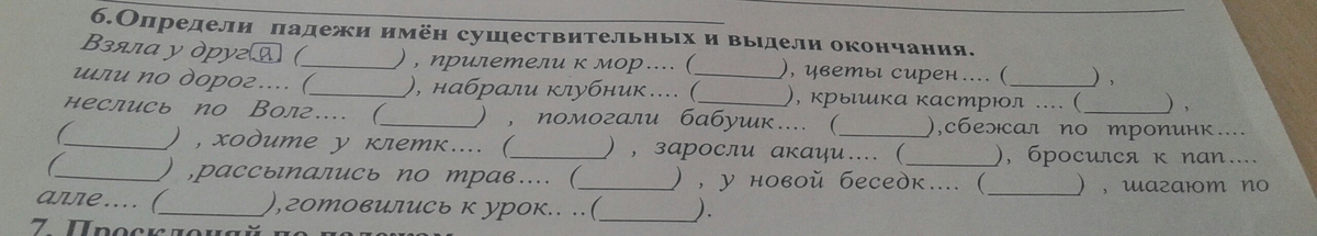 Взяла у друга ( Р п) прилетели к морю ( Д п) цветы сирени ( Р п) шли по дороге ( Д п ) набрали клубники ( Р п) крышка кастрюли ( Р п) неслись по Волге ( Д п) помогали бабушке ( Д п) сбежал по тропинке ( Д п)