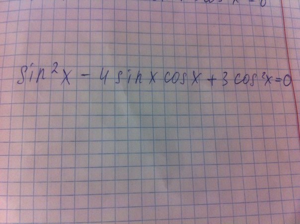 sin^2x - 4sinxcosx + 3cos^2x=0
