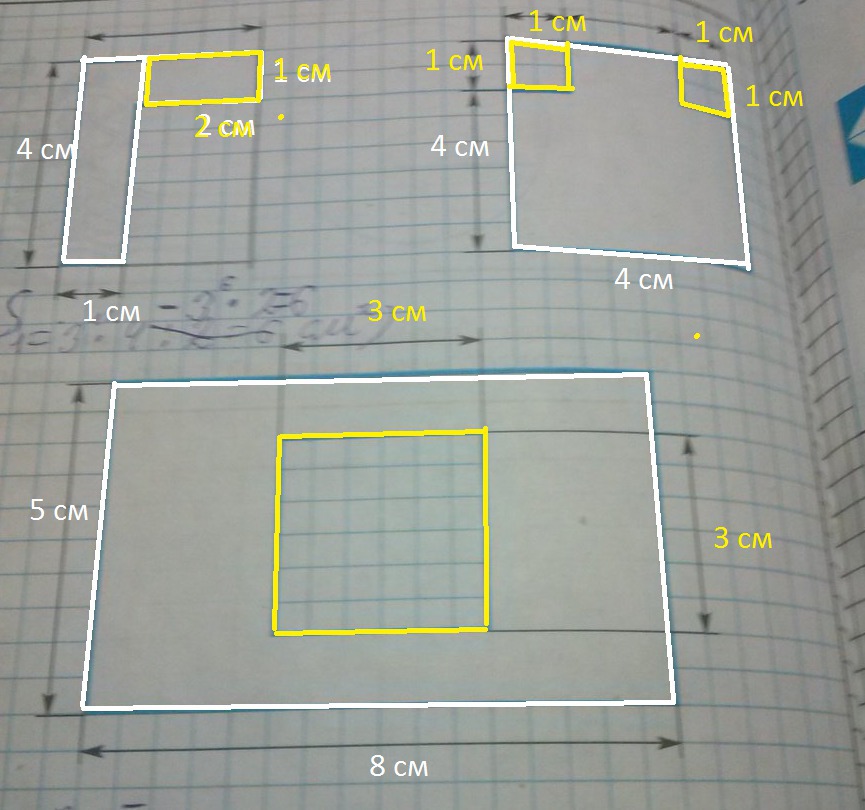 3)S=S(белого прямоугольника)-S(желтого квадрата)=