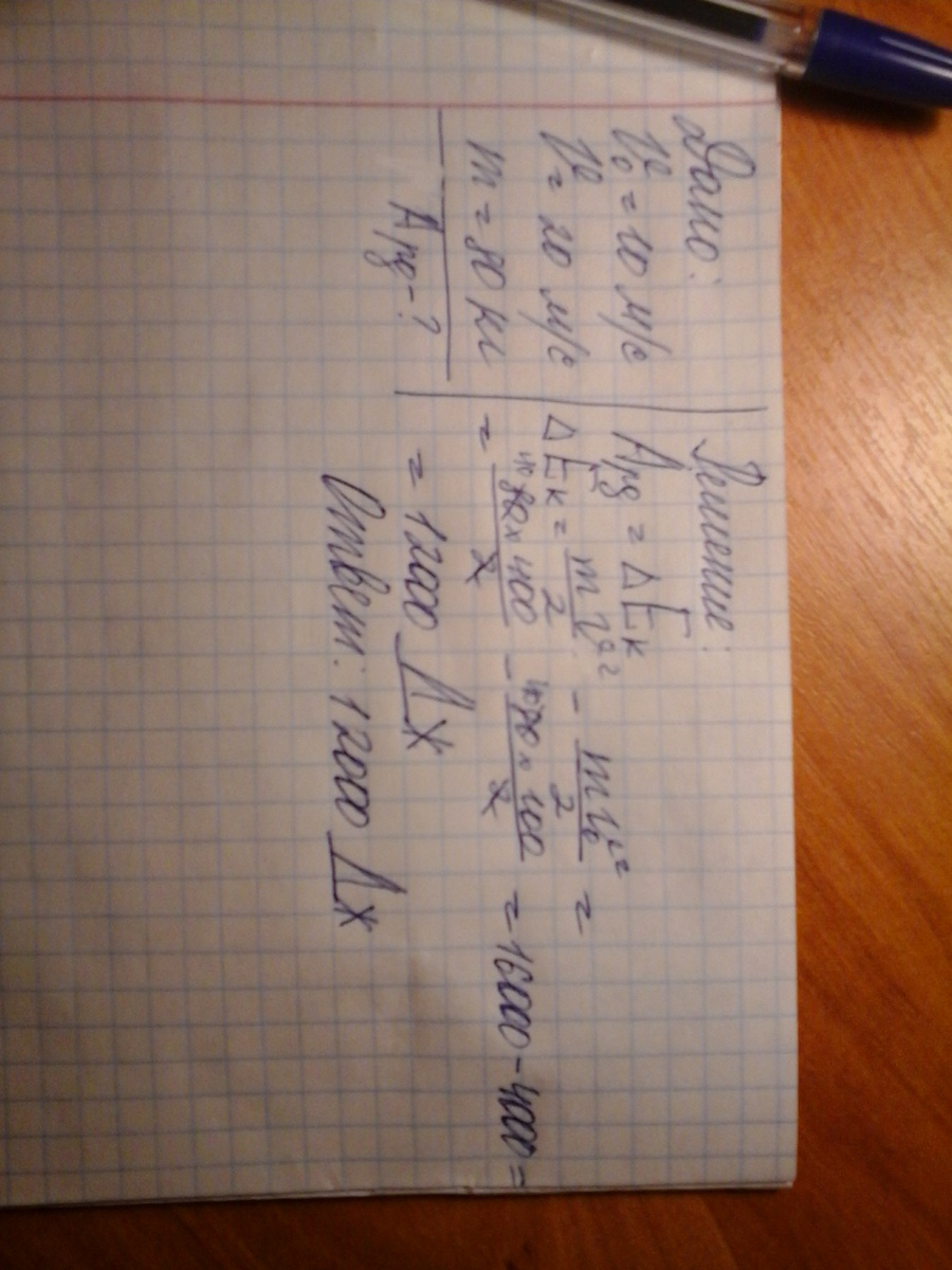 Скорость автобуса увеличивается от 10 до 20 м/c. Чему равна работа равнодействующей всех сил, действующих при этом на пассажира автобуса