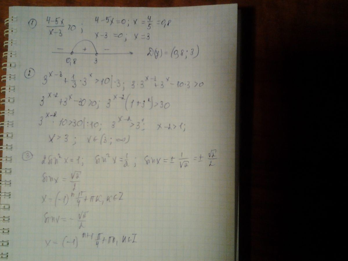 Использован метод интервалов, свойства степени, табличные значения синуса