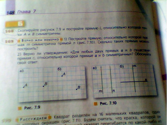 на рисунке 7.9 а) проведи прямую по середине что бы от линии до точки было 2 клетки аналогично и в б)