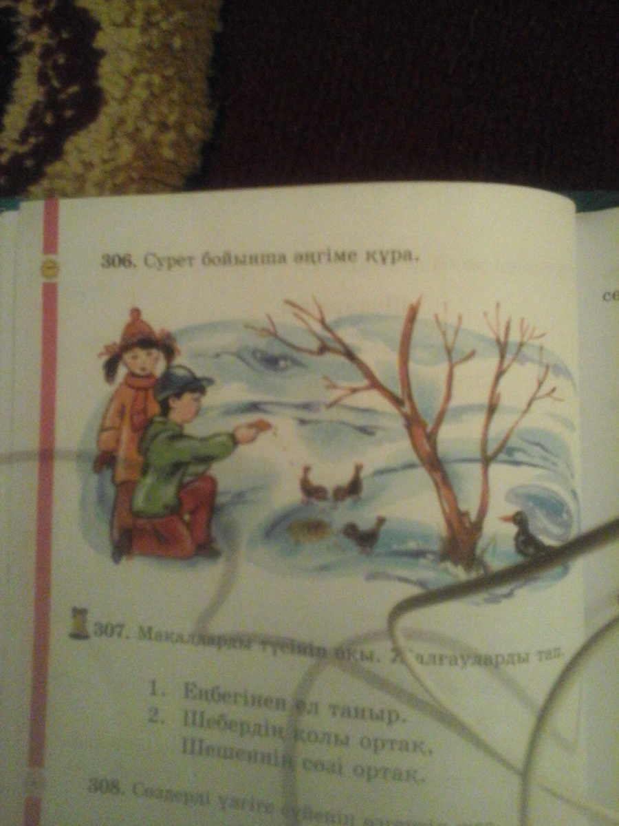 Далада қыс мезгілі.Улпектей ақ қар.Ағасы мен қарындсы демалыс күні далаға ойнауға шыққан кезде, ағаштың жанында қыстап қалған қара торғайларды көреді.Олардың тонып қалғанын көрген балалар,жем шашып бойларын жылытуға көмектесуде.Жем жеген қара торғайлар іштей балаларға ризалығын айтуда.