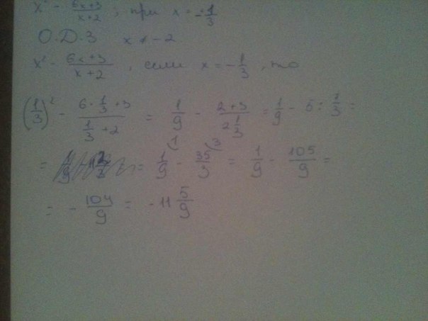 найти значение дроби !!!Срочно !!!х в квадрате -6х+3 дробь х+2 при х=-1дробь 3 пожалуйста полное решение