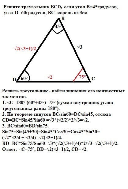 3. ВС/sin60=BD/sin75.