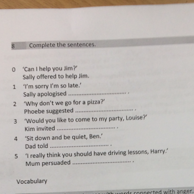 1. Sally apologised for being late.