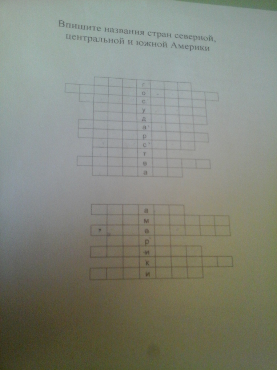Впишите названия стран северной центральной и южной Америки