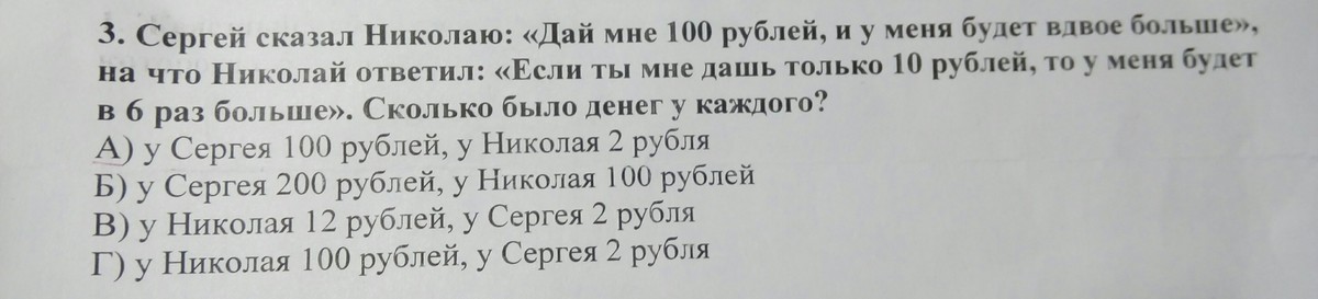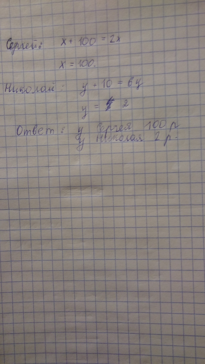 Сергей сказал Николаю: "Дай мне 100 рублей, и у меня будет..."