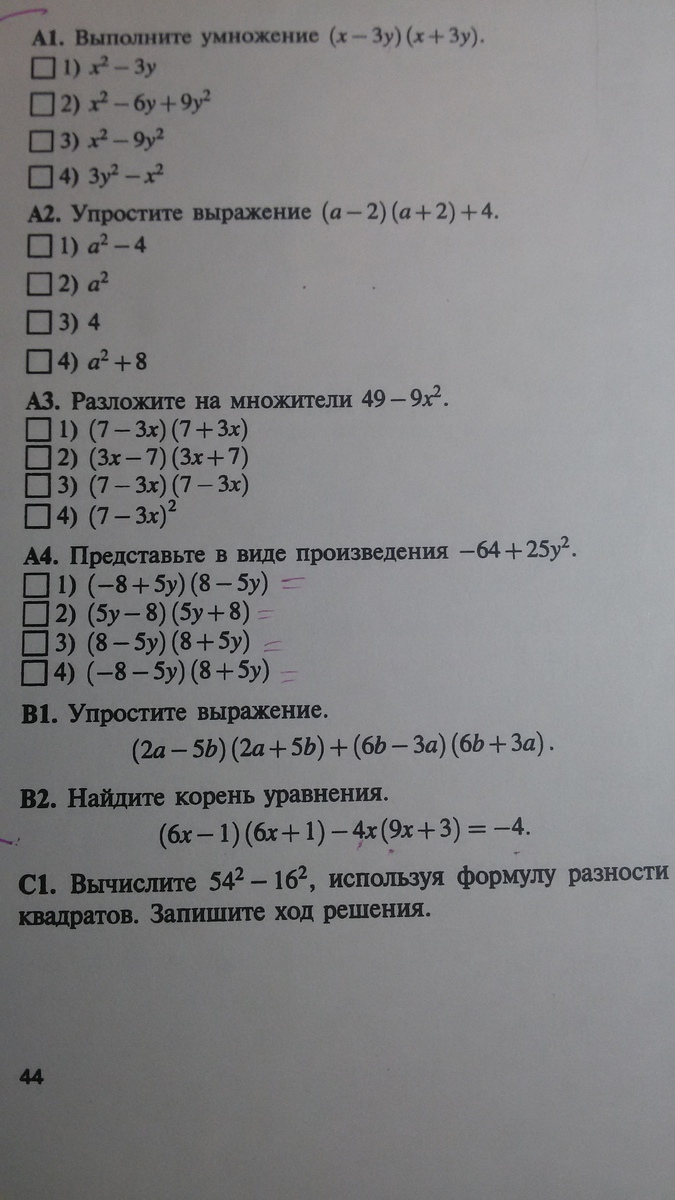 A1.(x-3y)(x+3y) =x^2 - 9y^2 ( по формуле разность квадратов)