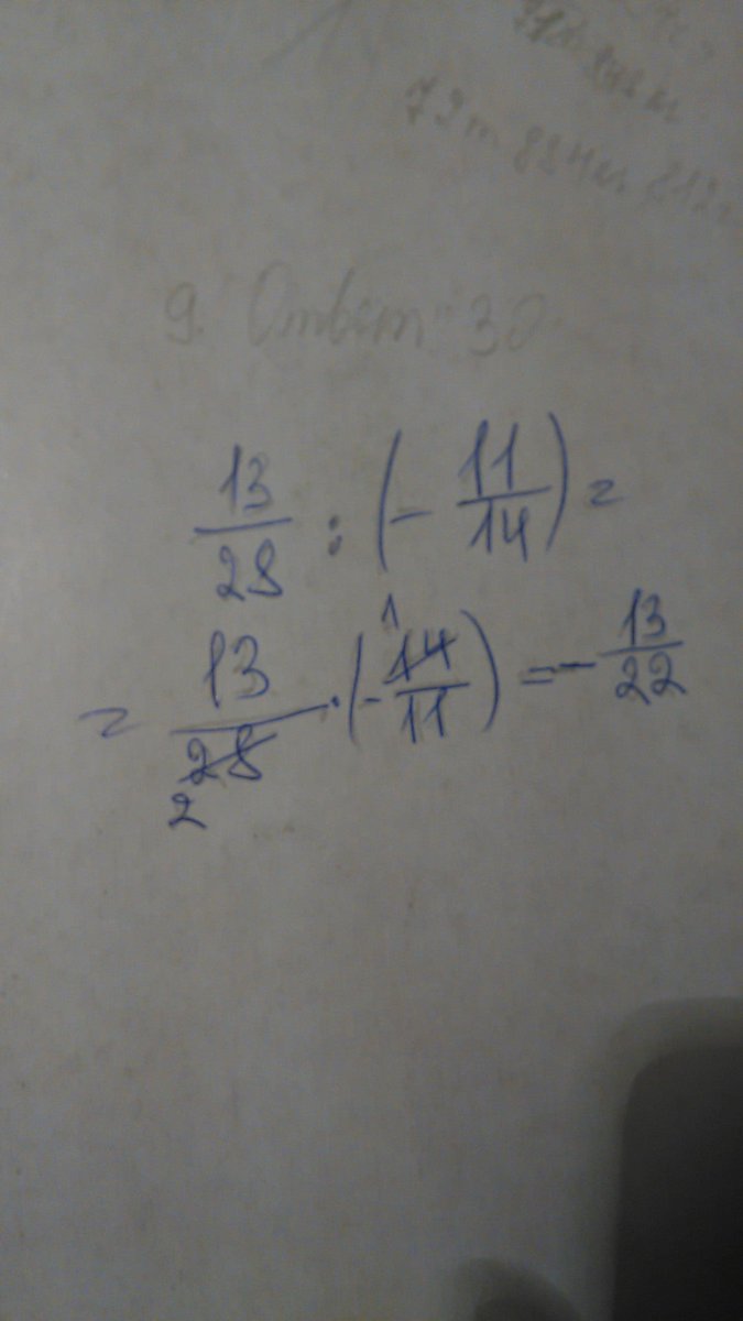 13/28:(-11/14)=13/28:-22/28=13/28х28/-22=13/-22