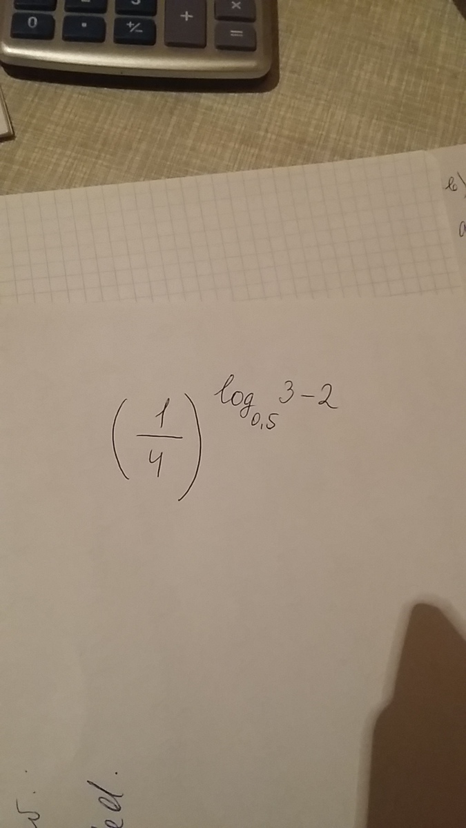 ( frac{1}{4} )^{log_{0.5}3-2}=( frac{1}{4} )^{log_{ frac{1}{2} }3-log_{ frac{1}{2} }( frac{1}{2} )^2}= \  \ =( frac{1}{4} )^{log_{ frac{1}{2} }( frac{3}{ frac{1}{4} } )}=( (frac{1}{2})^2 )^{log_{ frac{1}{2} }12}= \  \ =( frac{1}{2} )^{2log_{ frac{1}{2} }12}=( frac{1}{2} )^{log_{ frac{1}{2} }12^2}= \  \ =12^2=144