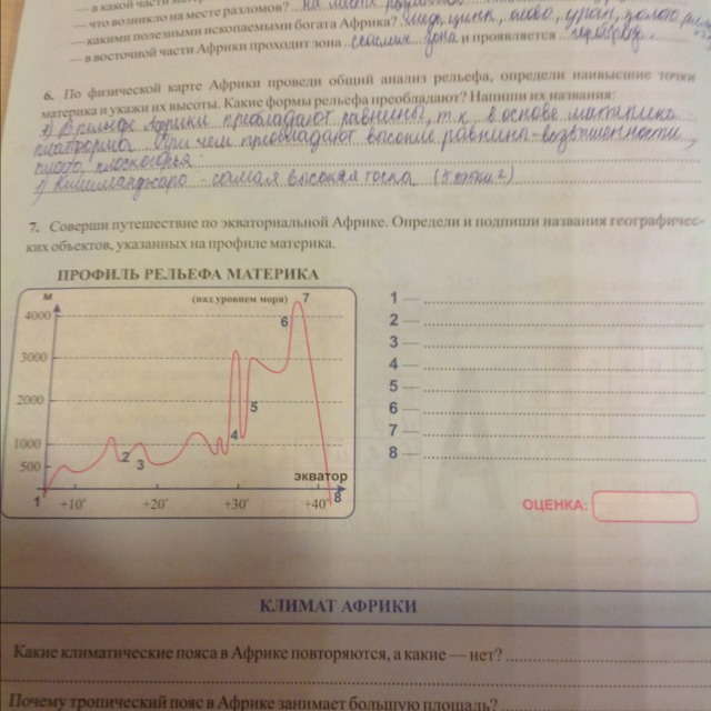 соверши путешествие по экваториальной Африке. определите и подпишите названия географических объектов указанных на профиле материка