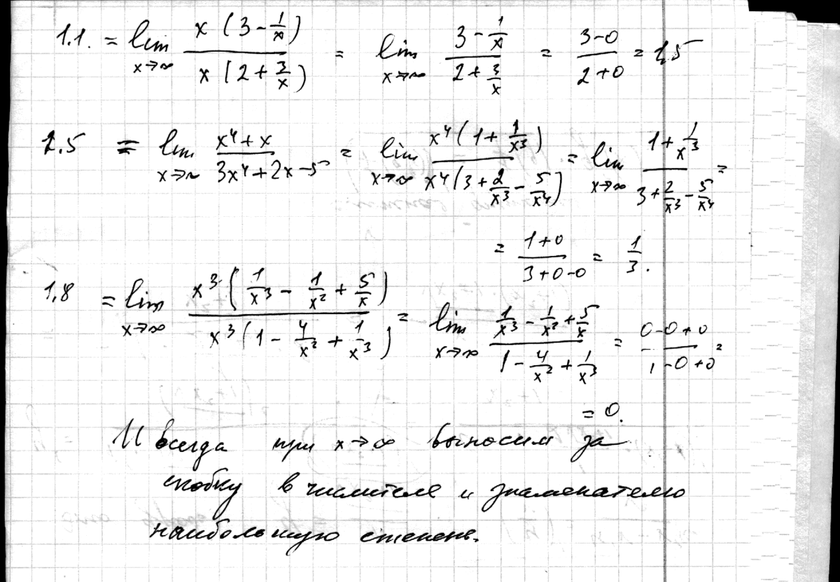 При вычислении таких пределов выноси большую степень за скобки,она сокращается.