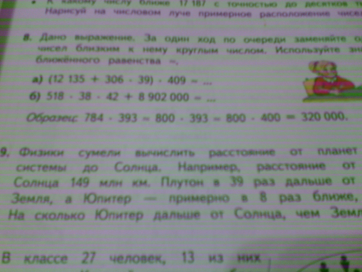 Дано выражение. За один ход по очереди заменяйте одно из чисел близким к нему круглым числом. Используйте знак приближённого равенства ~