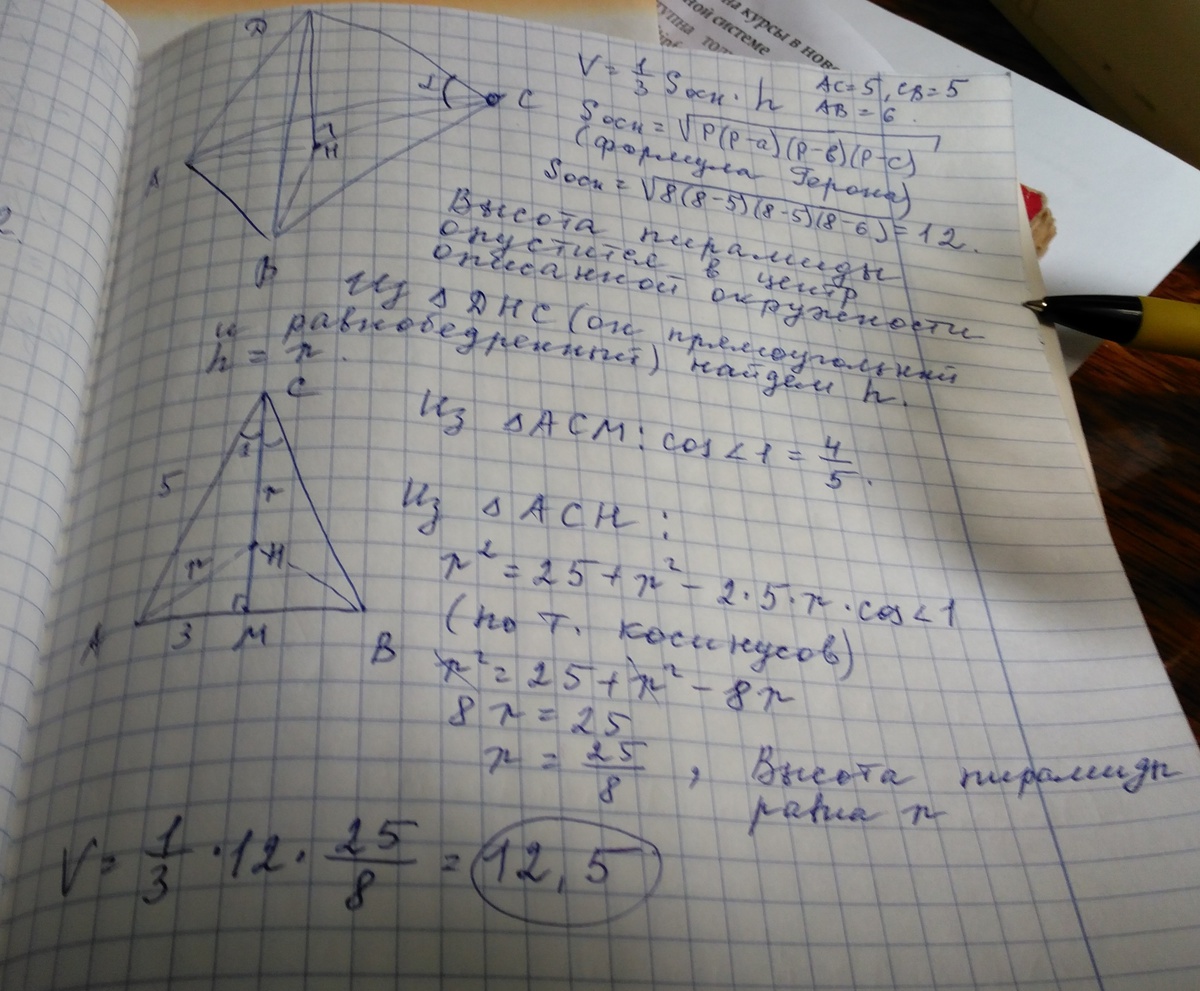 Найти объем пирамиды.