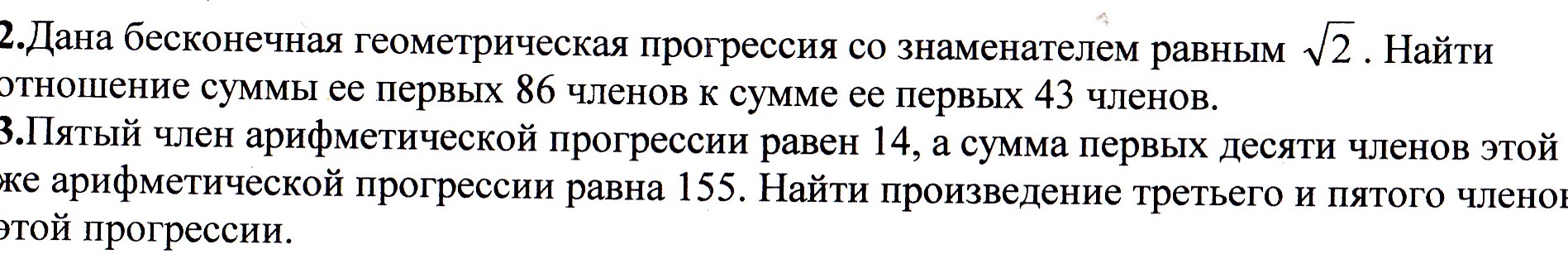 1) Сумма 86 членов = b1*(√(2^86) - 1)/(√2 - 1)