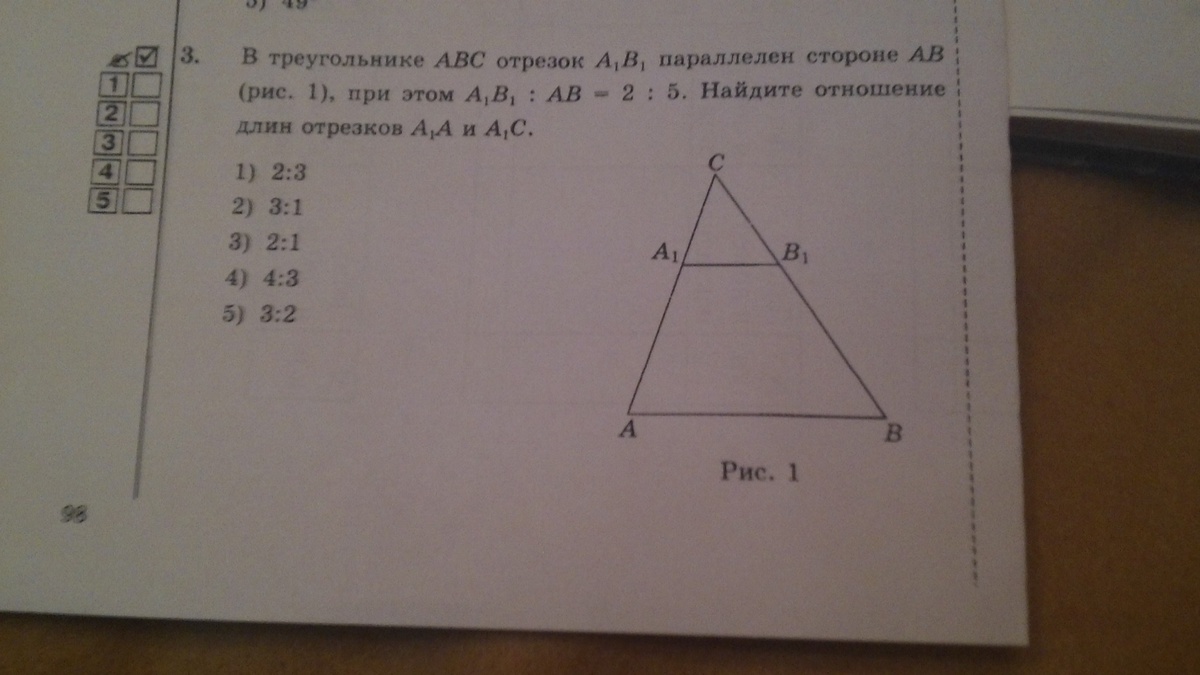 А1В1 : АВ = 2 : 5. Значит, А1С 6 АС тоже как 2 : 5.