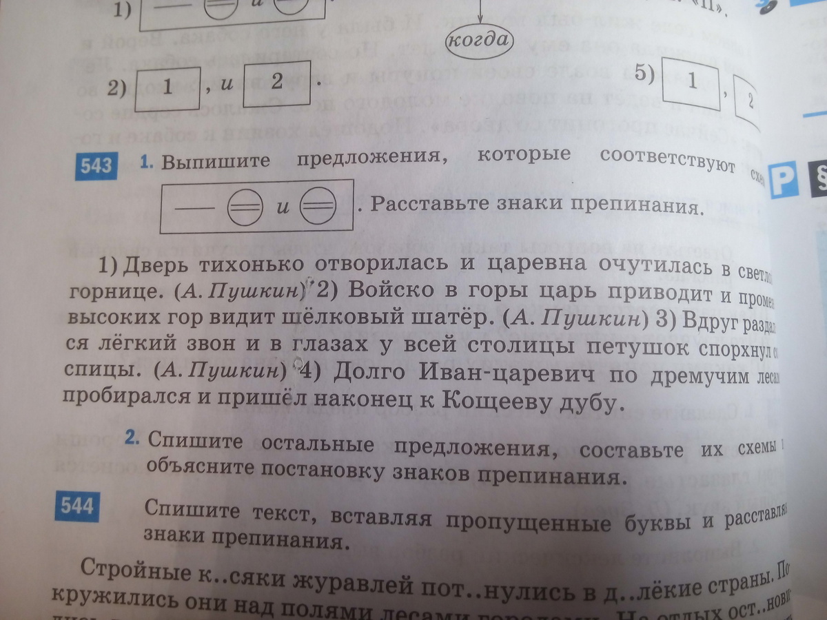 1) [ Дверь(-) отворилась (=) и царевна (-) очутилась (=)]