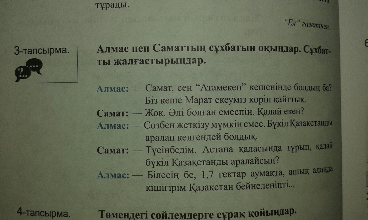 - Cамат, ты был в комплексе "Атамекен"? Мы вчера с Маратом ходили.