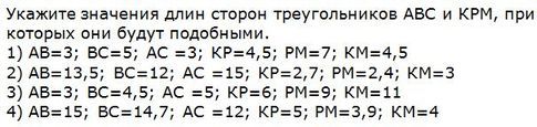 Только в варианте 2) стороны пропорциональны и треугольники подобны: