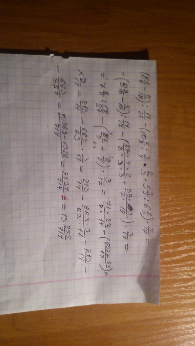 (8 1/6 - 5/18) : 14/27 - (10 7/8 : 3/4 × 2/3 + 5 3/7 : 6 1/3) × 3/17 = 12 2/7