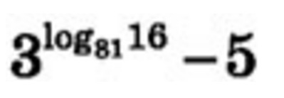 3^(log81 (16))-5=3^(1/4*log3 (16))-5=3^(log3 (16^(1/4)))-5=3^(log3 (2))-5=2-5=-3