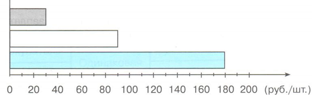 На диаграмме представлена цена трёх видов товара.