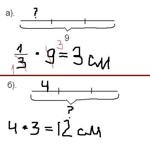 б). Длина 1/3 ленты = 4 см. Сколько см вся лента?