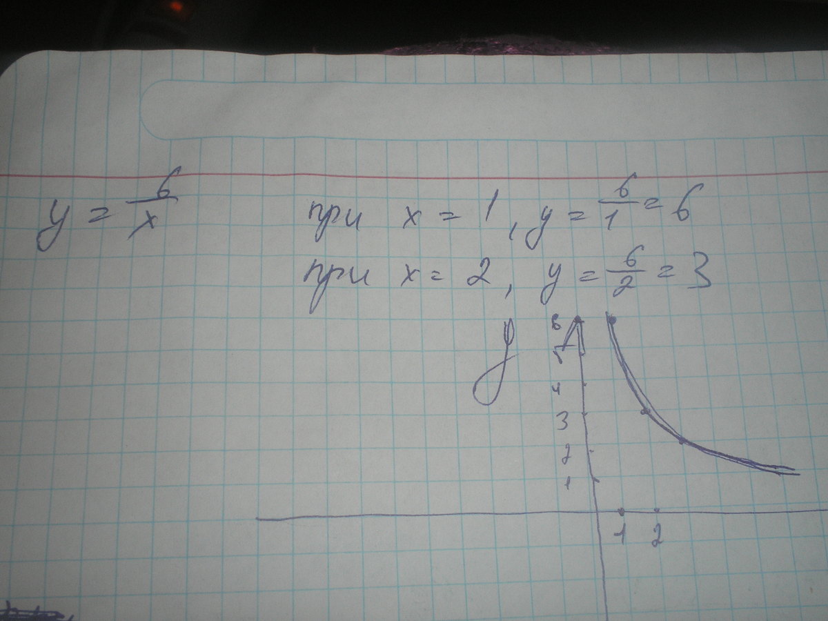 3. График - гипербола в 1 и 3 четвертях, в точке x=4 y=1,5.