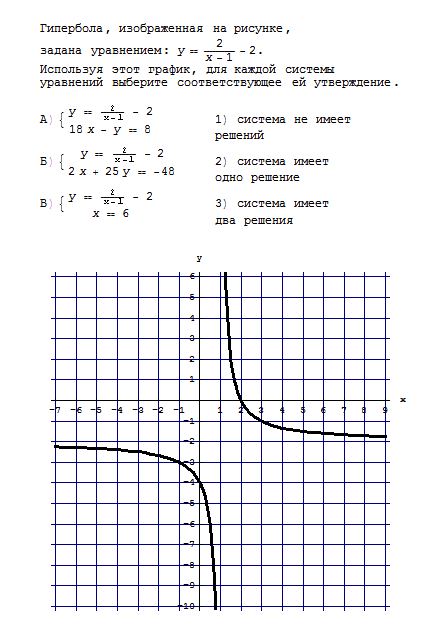 Гипербола, изображенная на рисунке, задана уравнением: y = 2/x-1 - 2