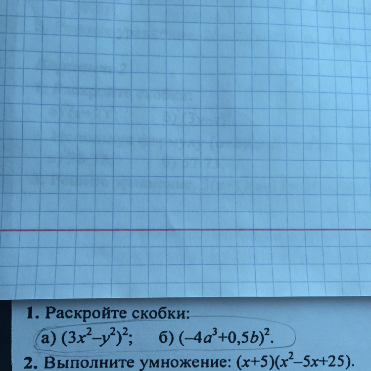 (3x^2-y^2)^2=(3x^2)^2-2*3x^2y^2+(y^2)^2=9x^4-6x^2y^2+y^4\\(-4a^3+0,5b)^2=(-4a^3)^2+2(-4a^3)*0,5b+(0,5b)^2=\=16a^6-4a^3b+0,25b^2\\(x+5)(x^2-5x+25)=x^3+5^3=x^3+125