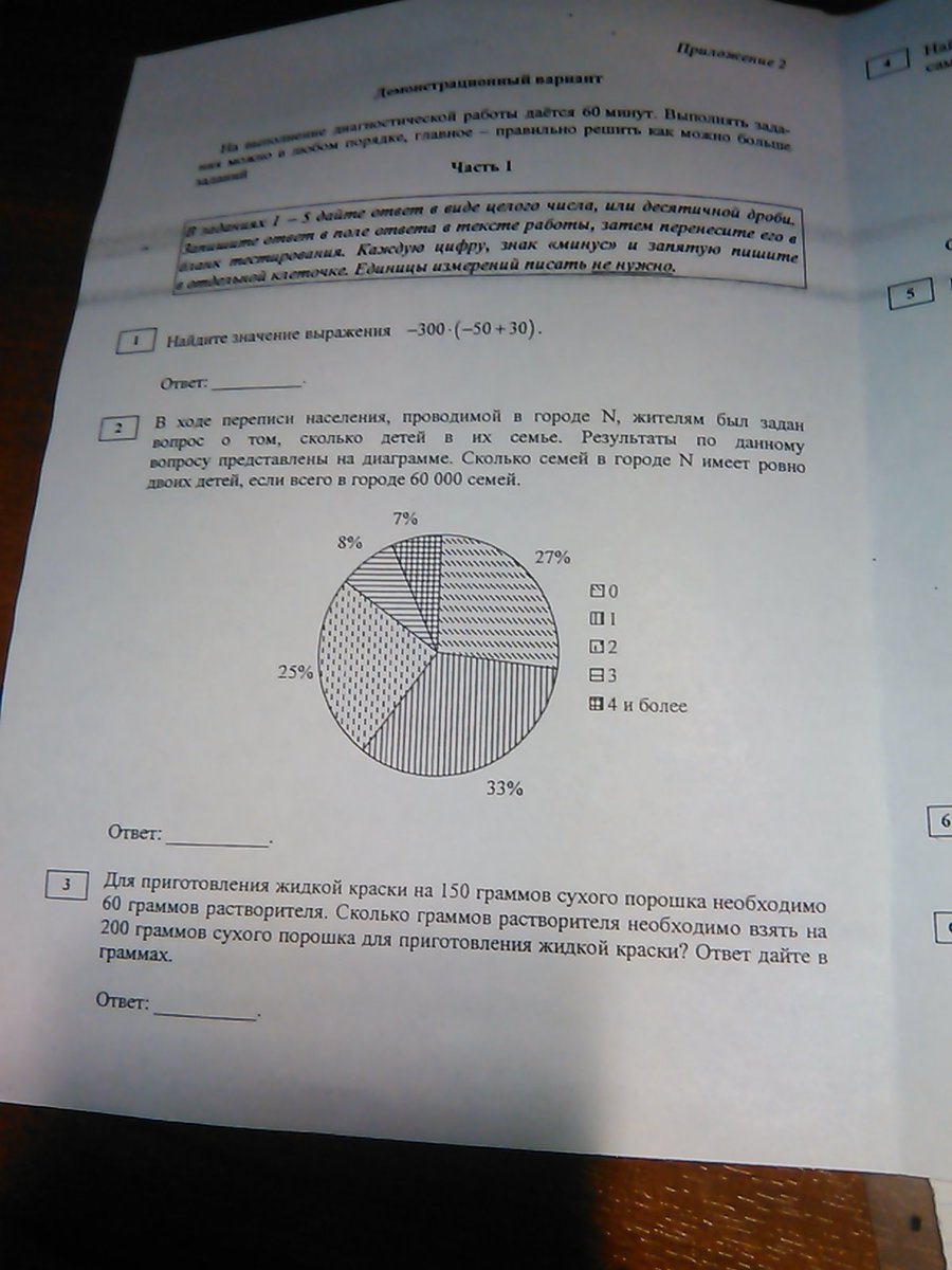 В ходе переписки населения, проводимой в городе N, жителям был задан вопрос о том сколько детей в семье. Результаты по данному вопросу представлены на диаграмме. Сколько семей в городе N имеет ровно на двоих детей, если всего в городе 60000.
