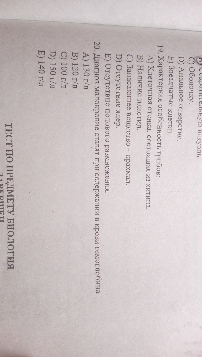 В 19 а) насчет 20-го не уверен. Как бы у мужчин гемоглобина не должно быть меньше 130г/л, а у женщин не меньше 120г/л. Так что в 20 я теряюсь :(