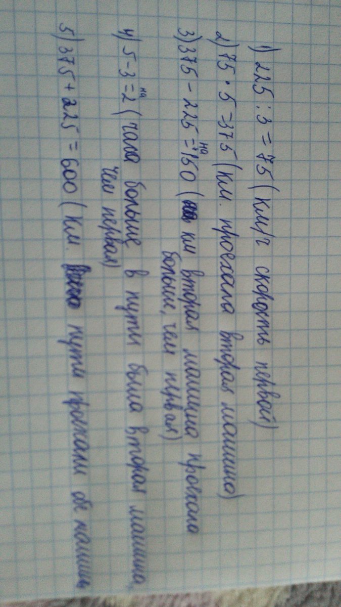 две машины двигались в противоположных направлениях с одинаковой скоростью . одна была в пути 3 часа и проехала 225 км,а вторая была в пути 5 часов задания такое