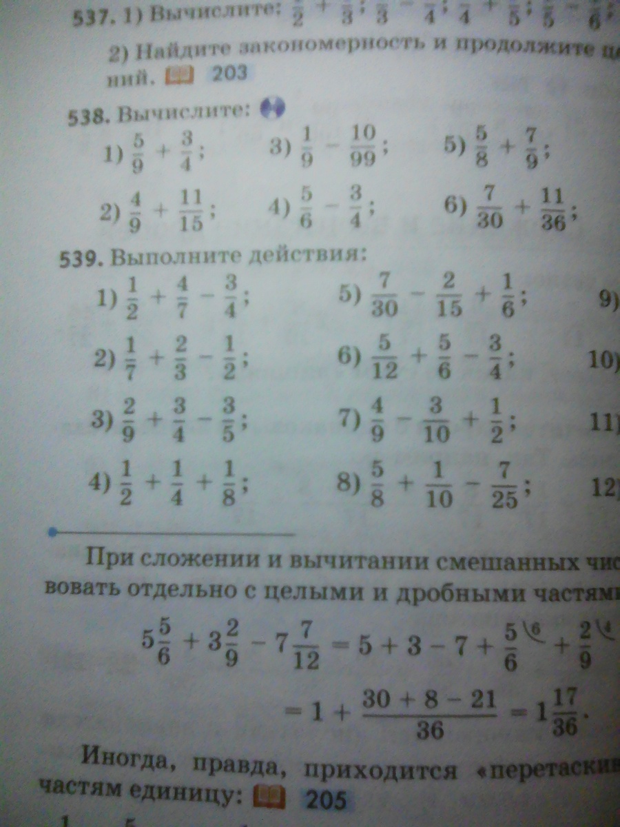 1) 1/2 + 4/7 - 3/4 = (14+16-21)/28 = 9/28