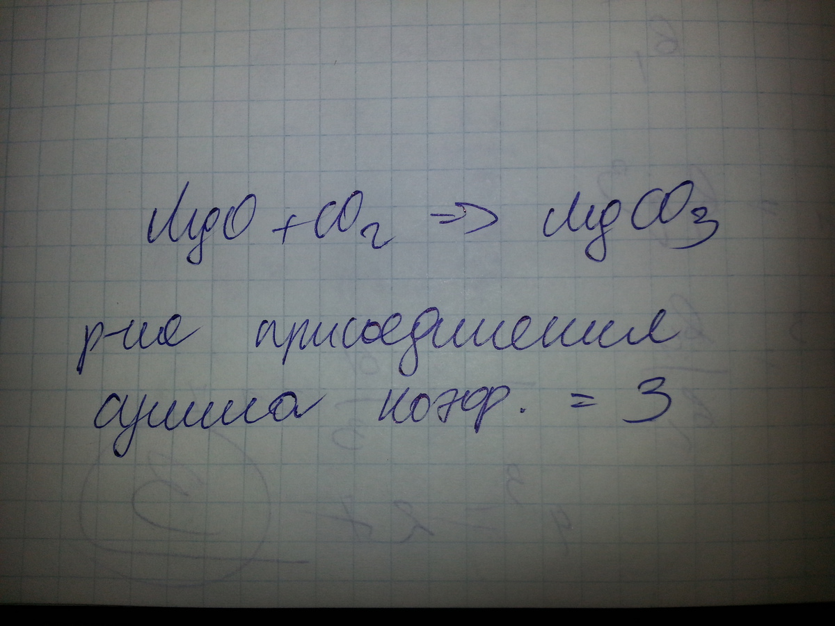 Напиши уравнение реакции взаимодействия оксида магния с оксидом углерода(IV). Рассчитай, чему равна сумма коэффициентов в уравнении реакции