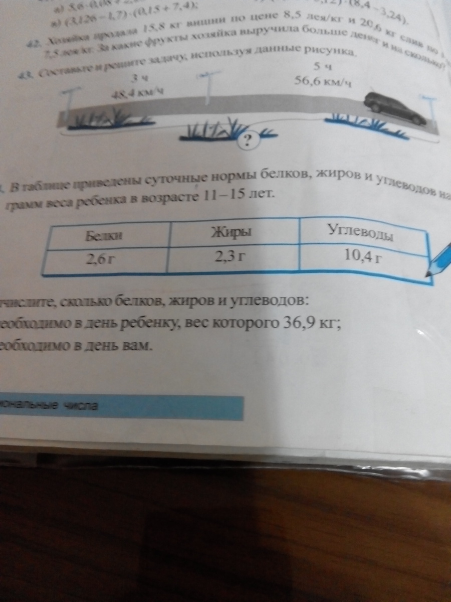в таблице приведены суточные нормы белков жиров и углеводов на 1 кг. веса ребёнка в возрасте 11-15 лет