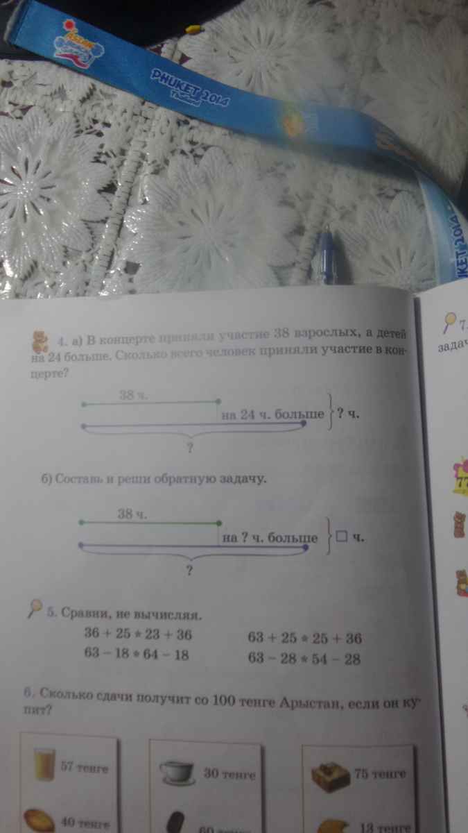 Ответ: в концерте приняли участие 62 ребёнка и их было на 24 больше, чем взрослых.