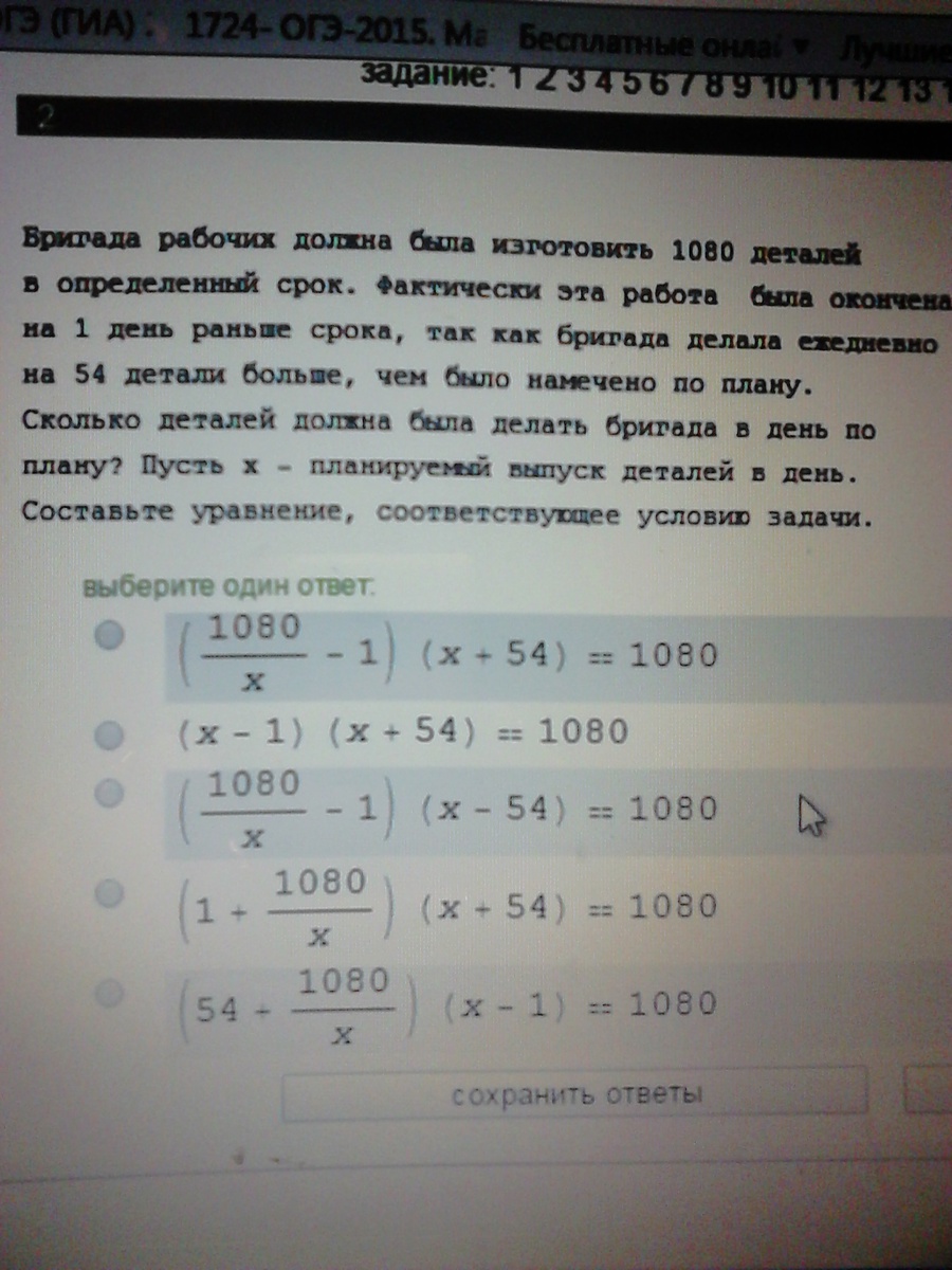 1 вариант ответа, я считаю. т.к. ежедневно выпускали на 54 больше, то соответственно (х+54) должно быть. а т.к. закончили на день раньше - значит в первой части должна вычитаться 1.