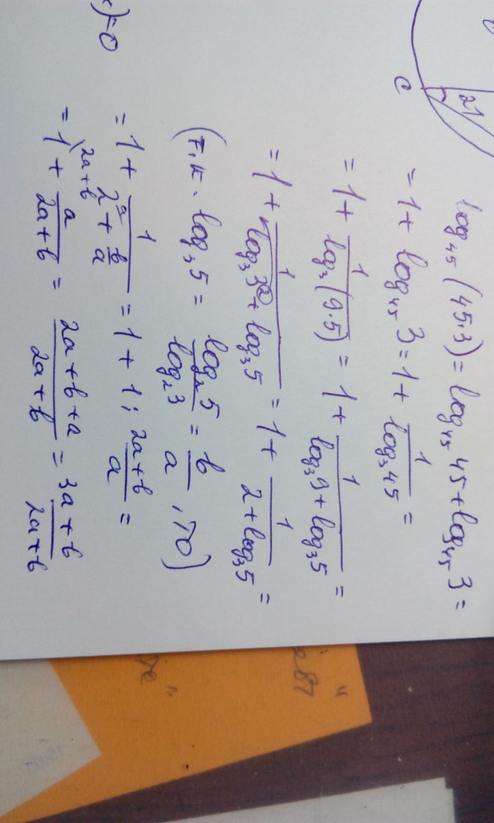 Логарифмы. Выразите... через a и b, если... (полное задание прикреплено файлом). Достаточно ответа.