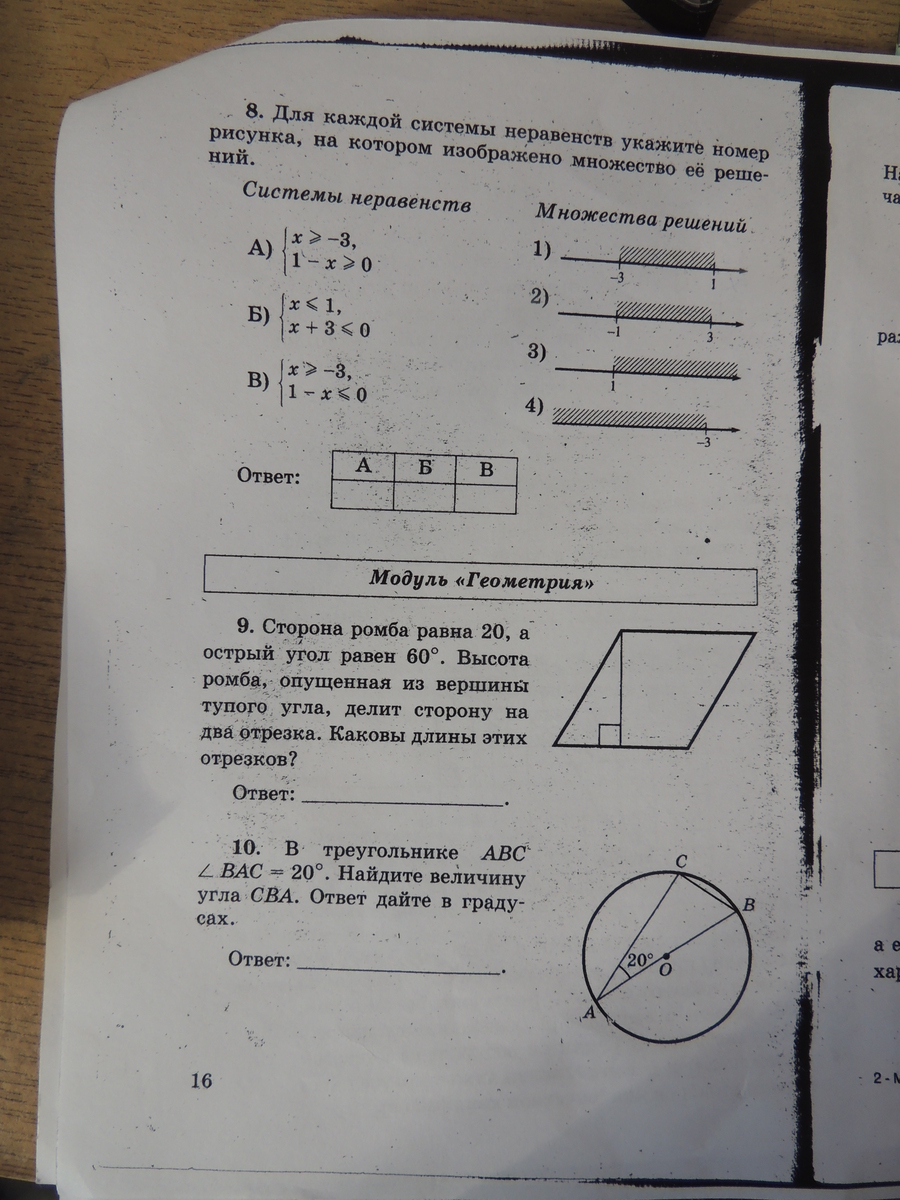сторона ромба равна 20,а острый угол равен 60 градусам. Высота ромба,опущенная из вершины тупого угла,делит сторону на два отрезка.Каковы длины этих отрезков