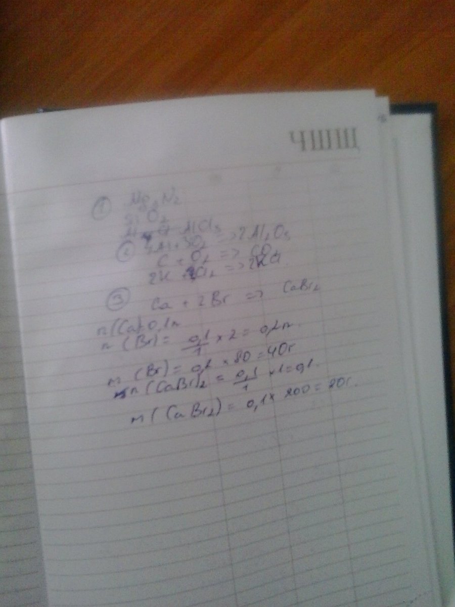 3.Кальций количеством вещества 0.1 моль взаимодействует с бором с образованием бромида кальция CaBr2. Определите массу брома,вступающего в реакцию,а также массу образующегося бромида кальция Ar(Br)=80