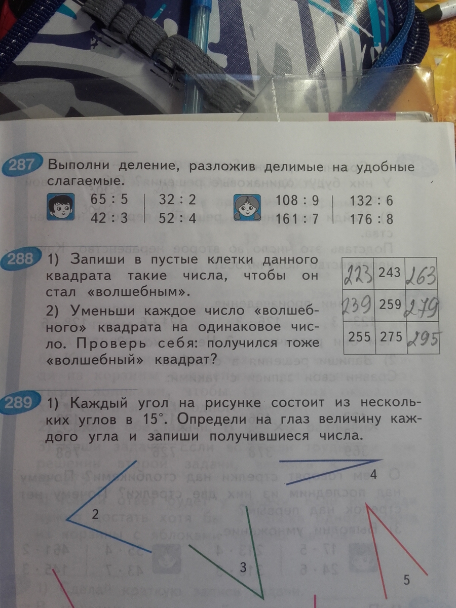 помогите номер 288 на сколько каждое число нужно уменьшить что б квадрат стал волшебным