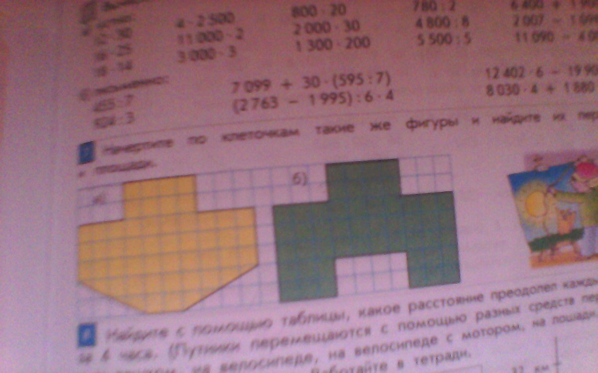 Начертите по клеточкам такие же фигуры и найдите их периметры и площади
