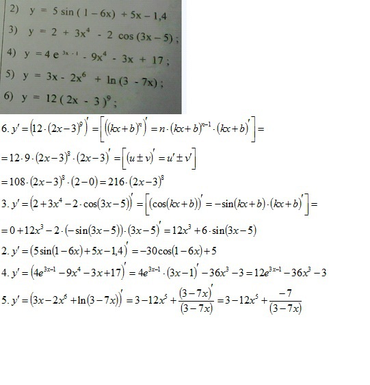6)y`=12·9·(2x-3)⁸·(2x-3)`=12·9·(2x-3)⁸·(2)=216·(2x-3)⁸