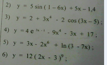 2) y`= 5·cos(1-6x)·(1-6x)`+5=5·cos(1-6x)·(-6)+5=-30cos(1-6x) + 5