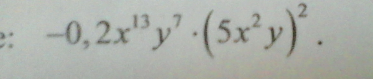 -0,2x^{13}y^7(5x^2y)^2=-0,2x^{13}y^7*25x^4y^2=-5x^{17}y^9