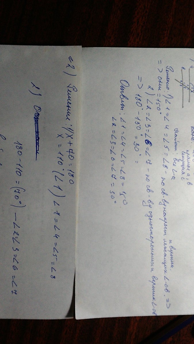 Найдите все углы,образованные при пересечении двух параллельных прямых a и b секущей с,если: 1)один из углов равен 150 градусов; 2)один из углов на 70 градусов больше другого.