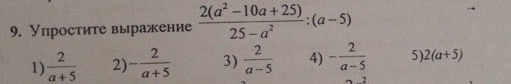 (5-a)(5+a) потом сократишь сам, и ответ где у тебя под цифрой 2