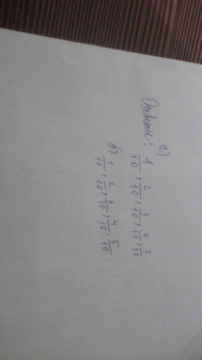 а) Представьте каждое из чисел 1, 2, 3, 4, 5 в виде дроби со знаменателем 10.